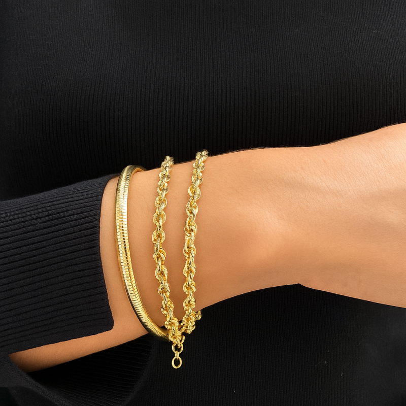 Złota bransoletka o splocie irydia to propozycja dla kobiet, które kochają połączenie ponadczasowej elegancji i delikatnego blasku. Jej misterny splot pięknie odbija światło, tworząc efekt subtelnego połysku, który przyciąga spojrzenia, ale pozostaje niezwykle szykowny.