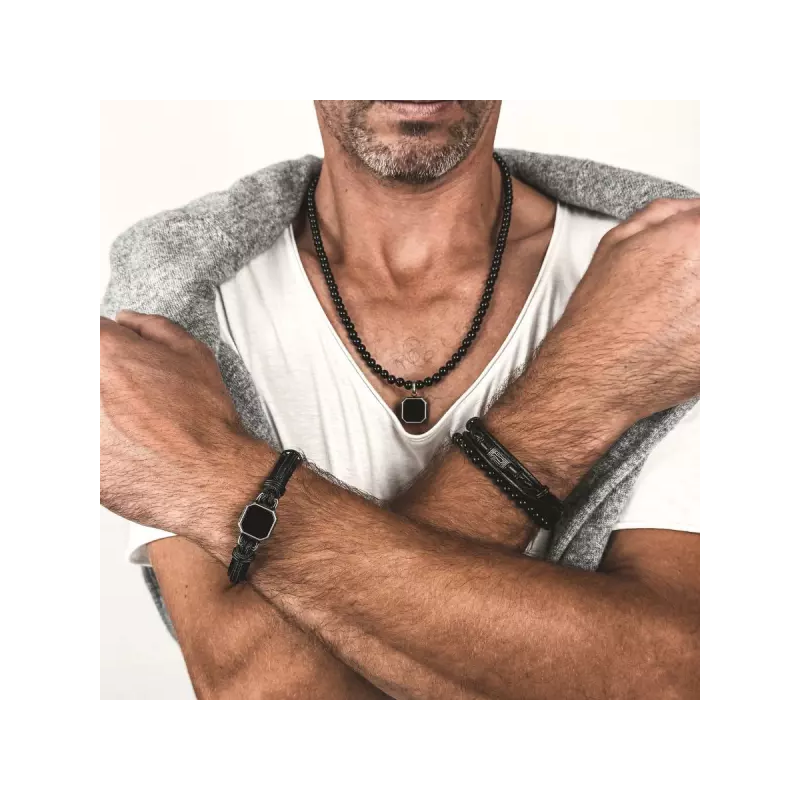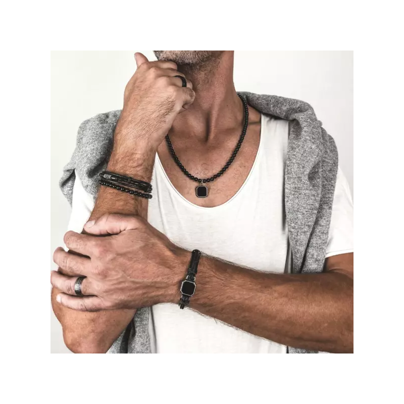 Całość uzupełnia czarny, przecierany charms z logo marki, który dodaje subtelnego charakteru i podkreśla staranne wykonanie biżuterii. To doskonały dodatek dla osób ceniących minimalistyczny styl, naturalne kamienie i biżuterię o głębokim znaczeniu. Idealna zarówno na co dzień, jak i jako osobisty talizman wspierający harmonię i wewnętrzną siłę.