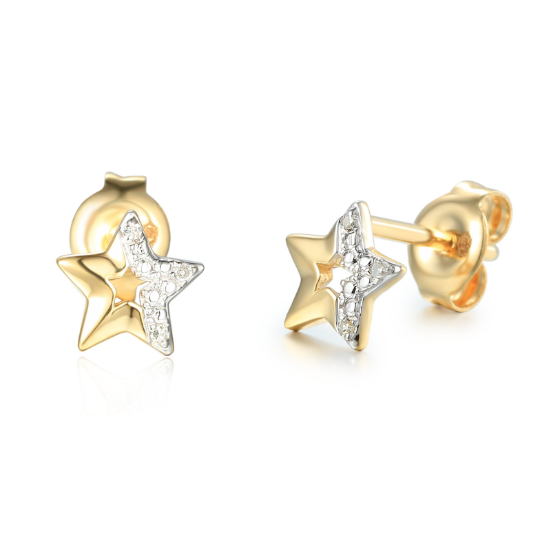 Złote kolczyki gwiazdki z diamentami to połączenie subtelności, elegancji i modnego minimalizmu. Wykonane ze złota próby 585, zachwycają idealnie wyważoną formą, która pięknie podkreśla delikatne rysy twarzy. Błyszczące diamenty nadają im luksusowego charakteru i sprawiają, że kolczyki skrzą się przy każdym ruchu.