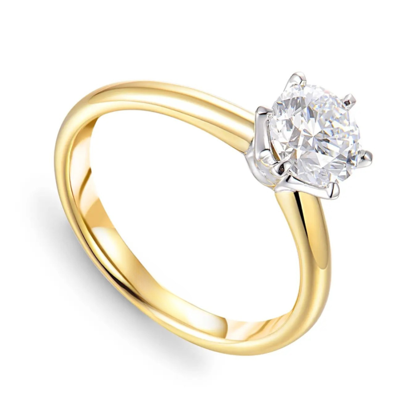 Wykonany z najwyższej jakości złota próby 585, w efektownym połączeniu żółtego i białego odcienia, prezentuje się niezwykle szlachetnie. Centralny diament laboratoryjny o masie 1 ct, barwie D i czystości VS2 to kamień premium, który olśniewa perfekcyjnym blaskiem i wyjątkową przejrzystością. Jego jakość potwierdza oficjalny certyfikat, dzięki czemu masz pewność, że wybierasz biżuterię klasy światowej.